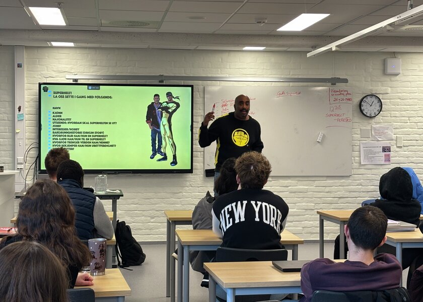 2TAF og KOMBIB har vært på Superheltverksted med Josef Tzagei Yohannes i regi av Den kulturelle skolesekken.