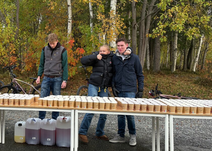 Elever fra Vg1 helse- og oppvekstfag hjalp til under Kortajoggen på Korta skole fredag før høstferien.