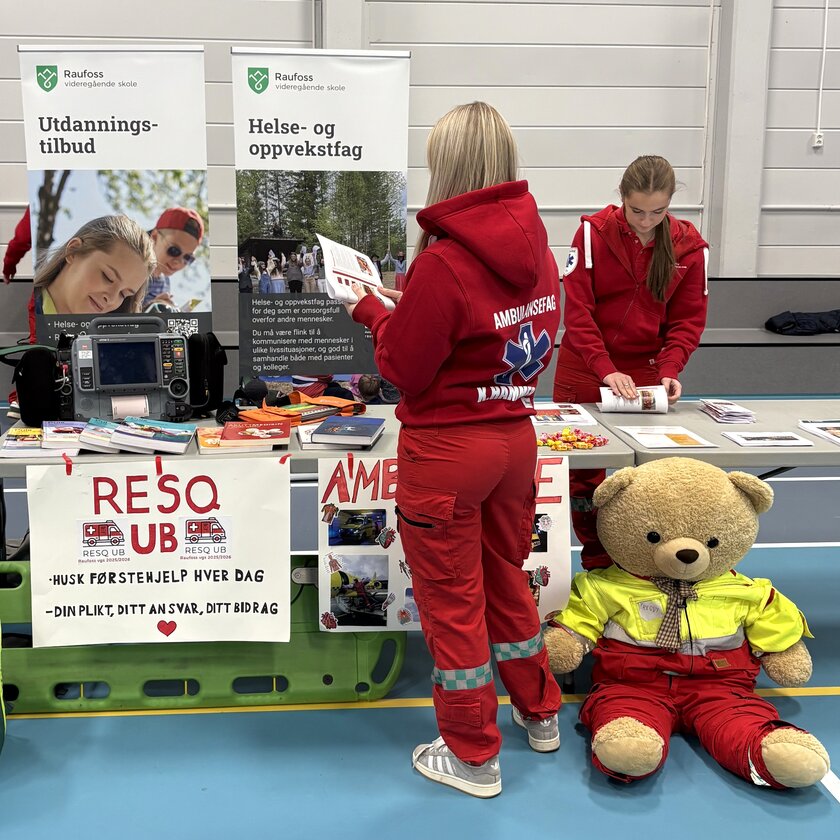 Helse- og oppvekstfag sin stand i Raufosshallen