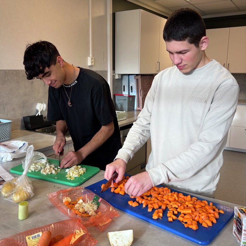 Deretter har de vært på kjøkkenet og laget grønnsakssuppe og rundstykker.