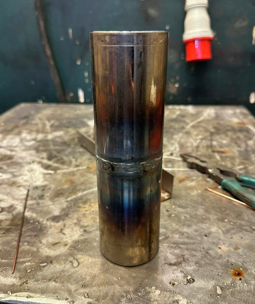 Sveising av to 12 mm stålplater i PF-stilling, med krav til flere strenger, punkting i PA, sliping underveis og presis kontroll av sveisens oppbygning. - TIG-sveising av rør (141):