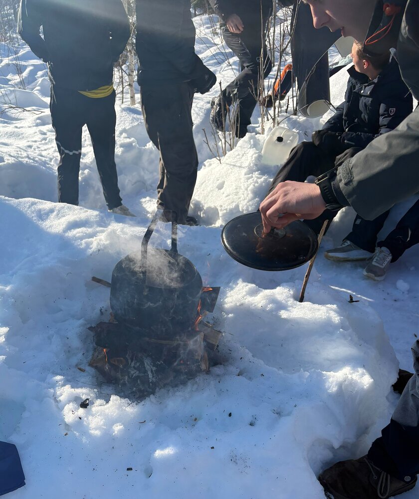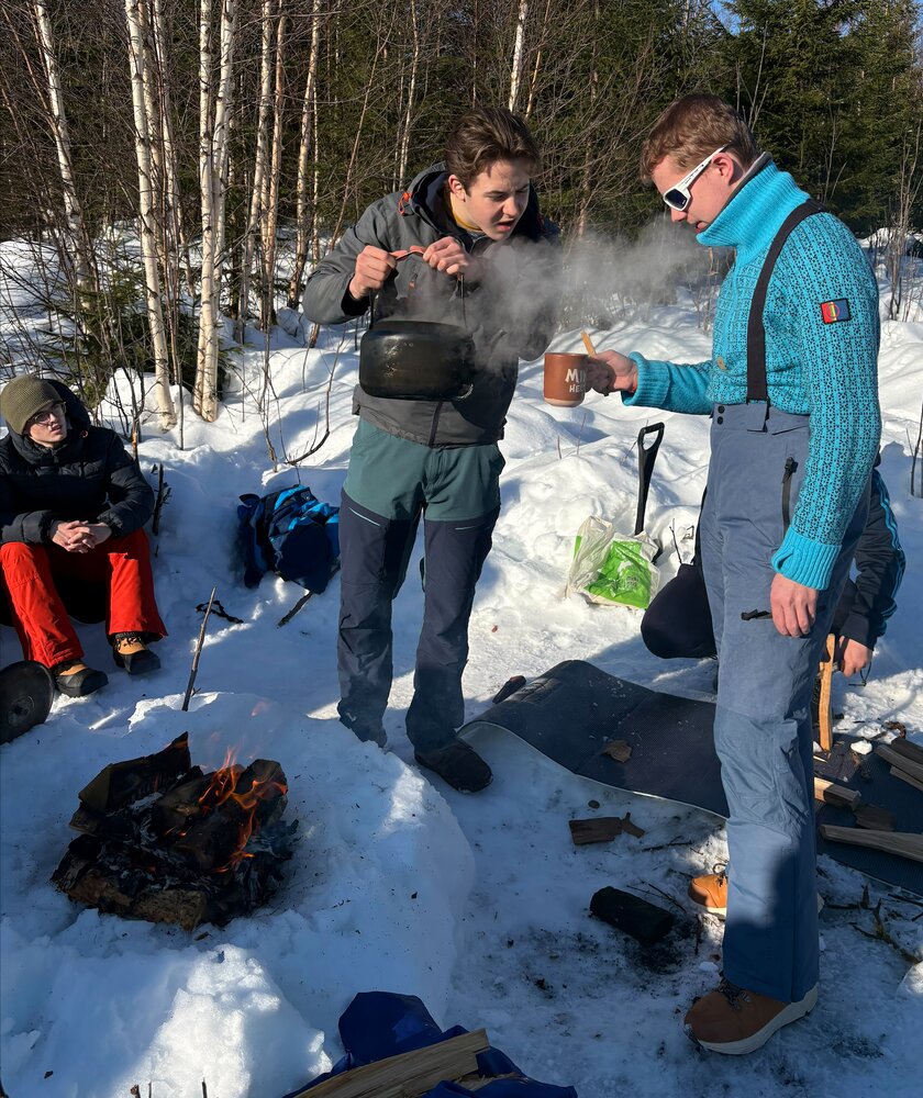 Elevene er delt inn i tre grupper og får prøve ulike vinterfriluftsaktiviteter hver uke – trugetur, bål og landart.